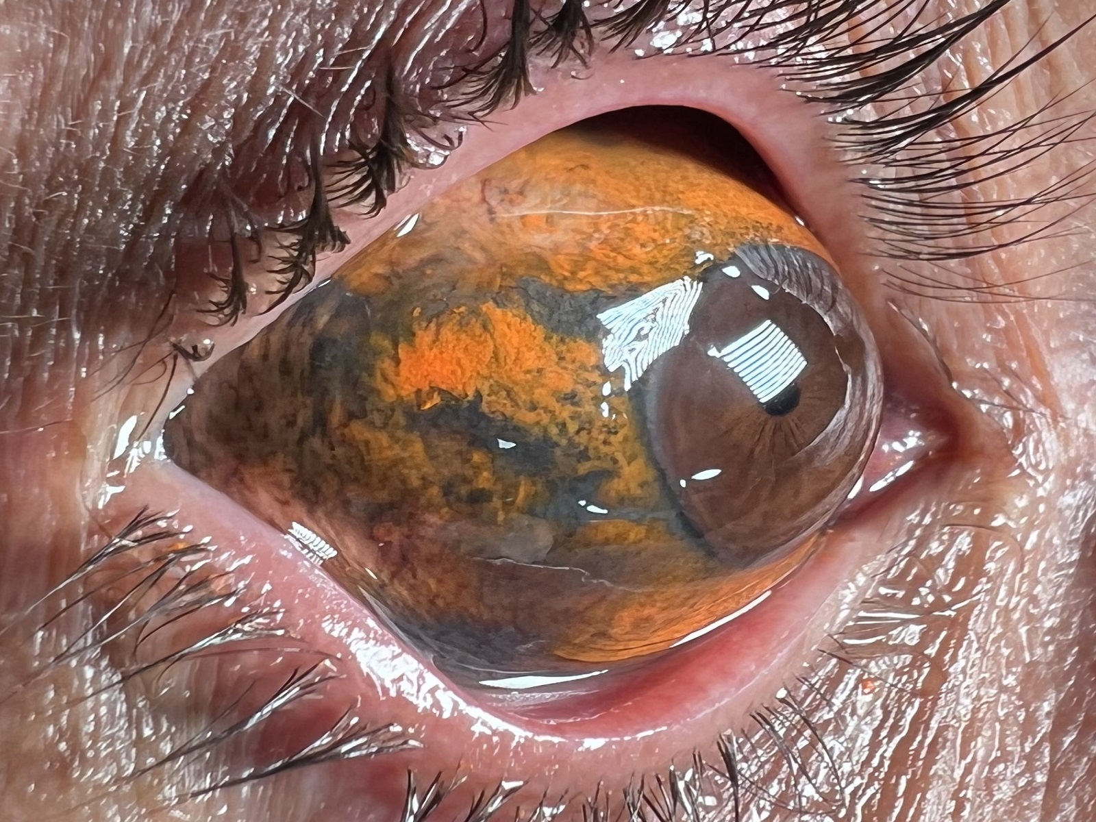 Es una tecnica que se realiza a base de una inyeccion entre la esclerotica y conjuntiva del ojo, logrando asi al cabo de 24 horas aproximadamente pigmentar el globo oculuar.